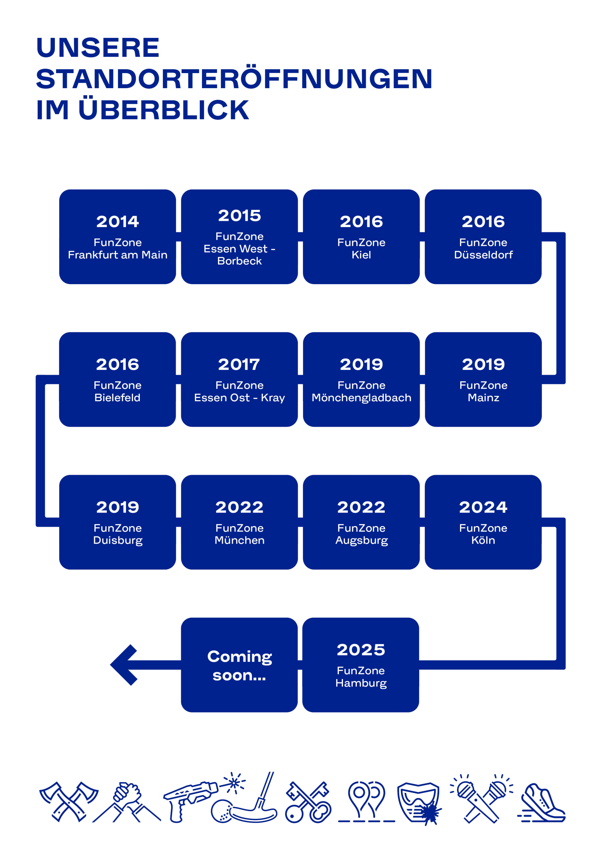 Die FunZone Erlebniswelten sind aus einer einfachen Idee entstanden: Menschen sollen unvergessliche Momente erleben, die sie zusammenschweißen und ihnen ein Lächeln ins Gesicht zaubern. Was mit einer einzigen Lasertag-Arena begann, hat sich Schritt für Schritt zu einem vielfältigen Netzwerk an Freizeiteinrichtungen in ganz Deutschland entwickelt.